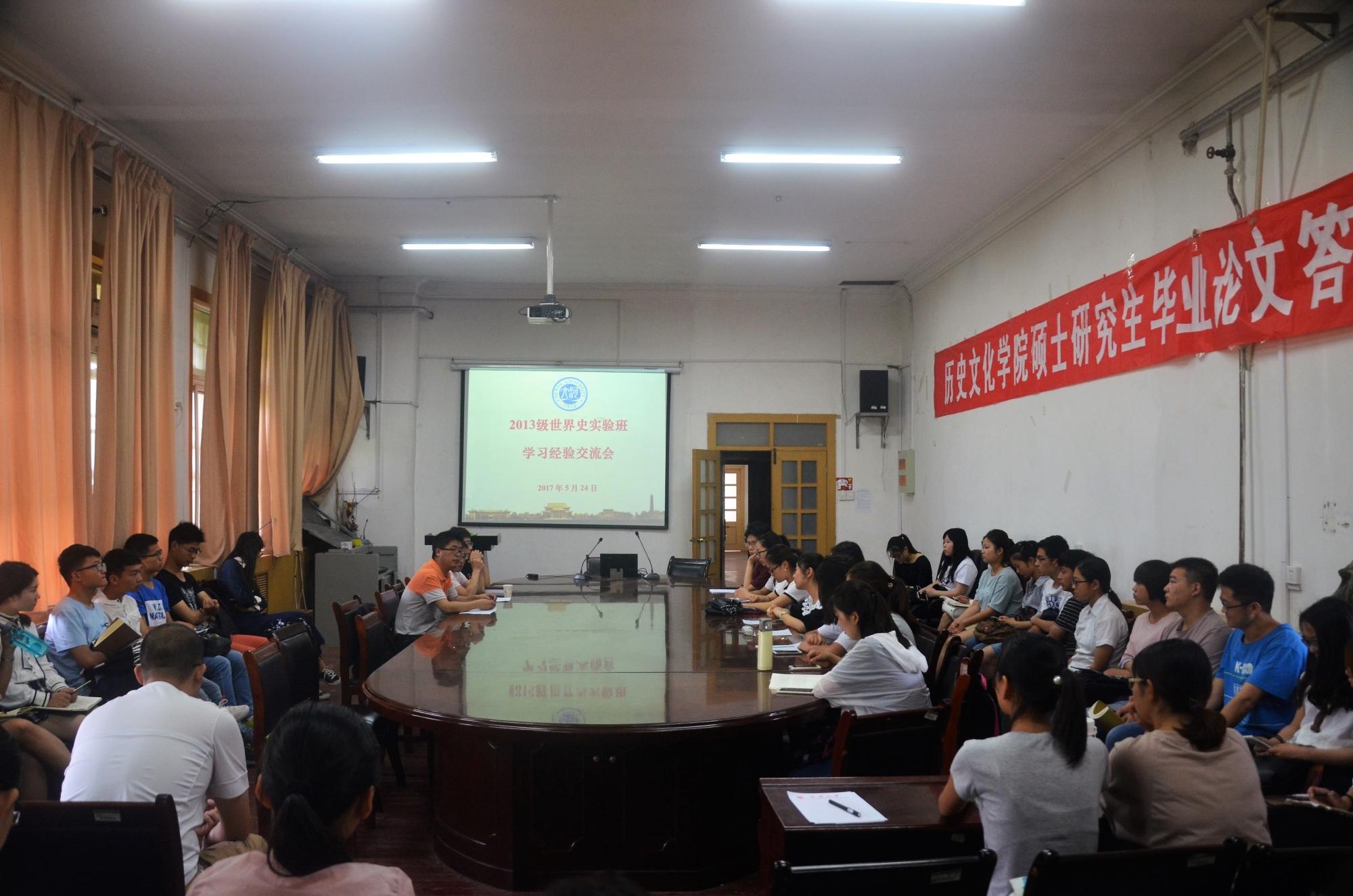 会议伊始,李恒、胡浩两位老师先后发言。李恒老师向全部2013级世界历史实验班21名毕业生表示祝贺:无论是升学,出国深造,或是选择工作,同学们都圆满完成了四年的学业,取得了优异的成绩,这是人生的一个重要阶段,希望同学们在接下来的人生历程中再接再厉,取得更好成绩!同时希望他们能够不忘母校,感恩母校,回馈社会。李恒老师同时也希望2013级的毕业生能够提出更多的经验,为今后学弟学妹们的考研工作提供更多的帮助。胡浩老师谈及了世界史专业的前景和考研方向,并向现场同学介绍了到场的2013级世界史实验班的成员并介绍了他们的考研和录取院校情况——全部21名同学16名继续攻读硕士学位,其中陈珮瑶同学同时被英国伯明翰大学等三所高校录取,剩下的3名同学有的会继续准备考研,有点选择工作。胡浩老师是2013级世纪历史实验班班主任,也是世界历史系主任,他希望今天参加学习经验交流会的其他年级同学踊跃提问,吸取学长们的宝贵经验。