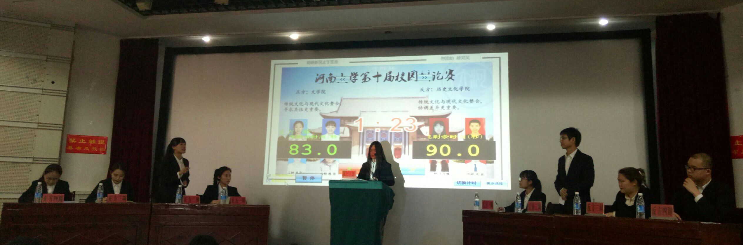 代表队与文学院代表队脱颖而出,站在了明伦校区决赛的舞台。他们的辩题是“传统文化与现代文化整合寻求共性或协调差异更重要”。