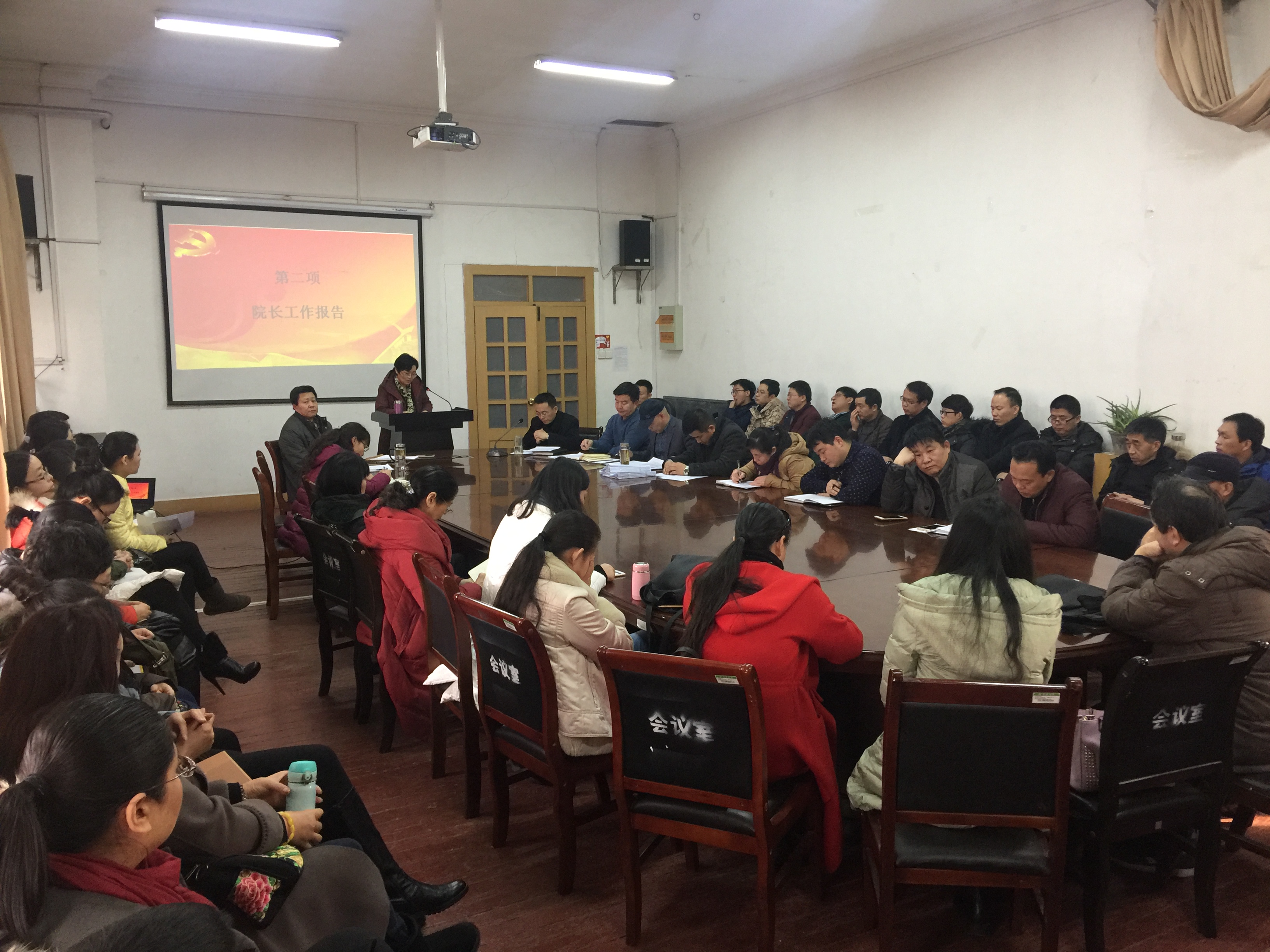 四届四次教职工暨工会会员大会在学院三楼会议室举行。学院全体党政领导和教职工参加了会议。会议由学院党委副书记、工会主席杨光辉主持。