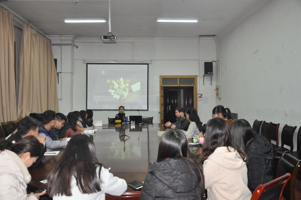 11月20日上午,以“博物馆旅游”为主题的学术沙龙活动在学院三楼会议室举行,博物馆学王运良老师、旅游管理王伟红和肖建勇老师出席了本次活动,由15级旅游管理的沈联衢主持,14级旅游管理的张鹏、王小倩、周天霞三位同学做了发言。