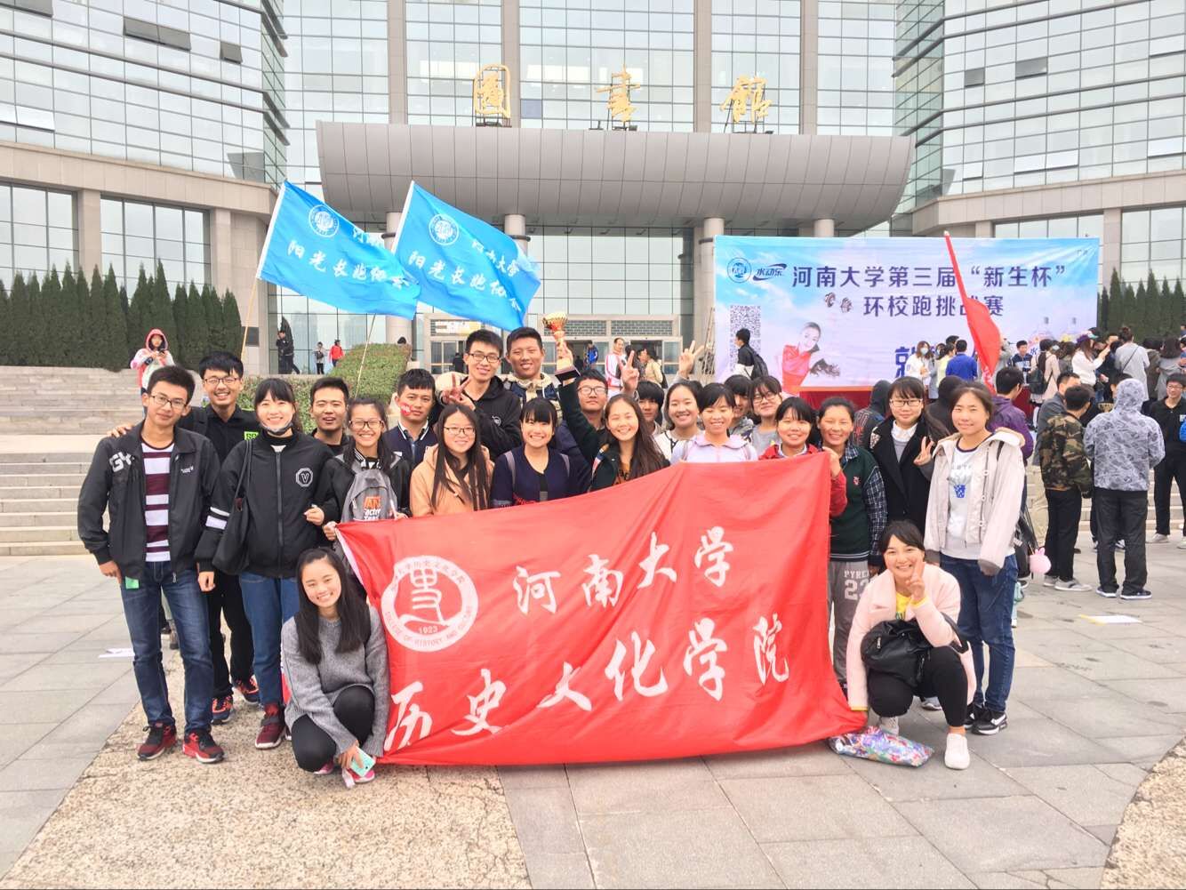 参赛选手从金明校区图书馆广场出发,环校内中州路两圈,总里程约5000米。随着发令员一声枪响,斗志昂扬的新生男子组冲出起点,赛道两旁的学生们也开始奋力呐喊助威。随后,其他各组也相继顺利地完成了比赛。