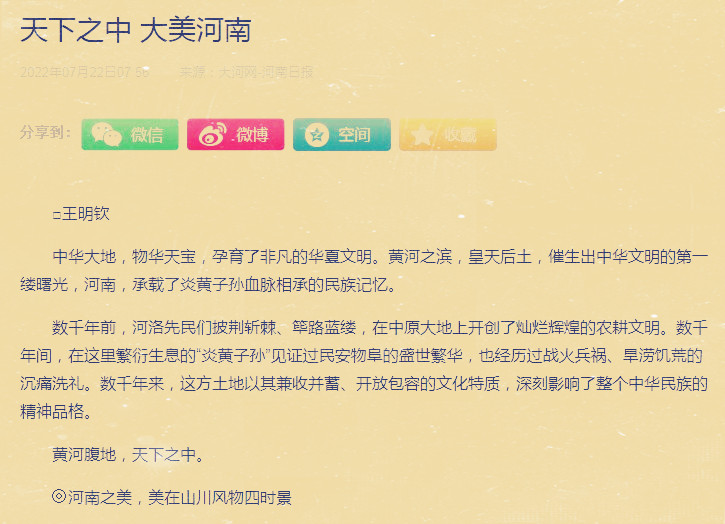 在历史系83级毕业生中,最新发生的一个“交集”,是在我们杞县老乡群,一位在省政府接待处工作的方宏伟在群里转发了一篇他们处室组织学习的一篇文章《天地之中 大美河南》。我点开一看,乐了,作者不是别人,正是我们83级2班的同班、现为51暗网