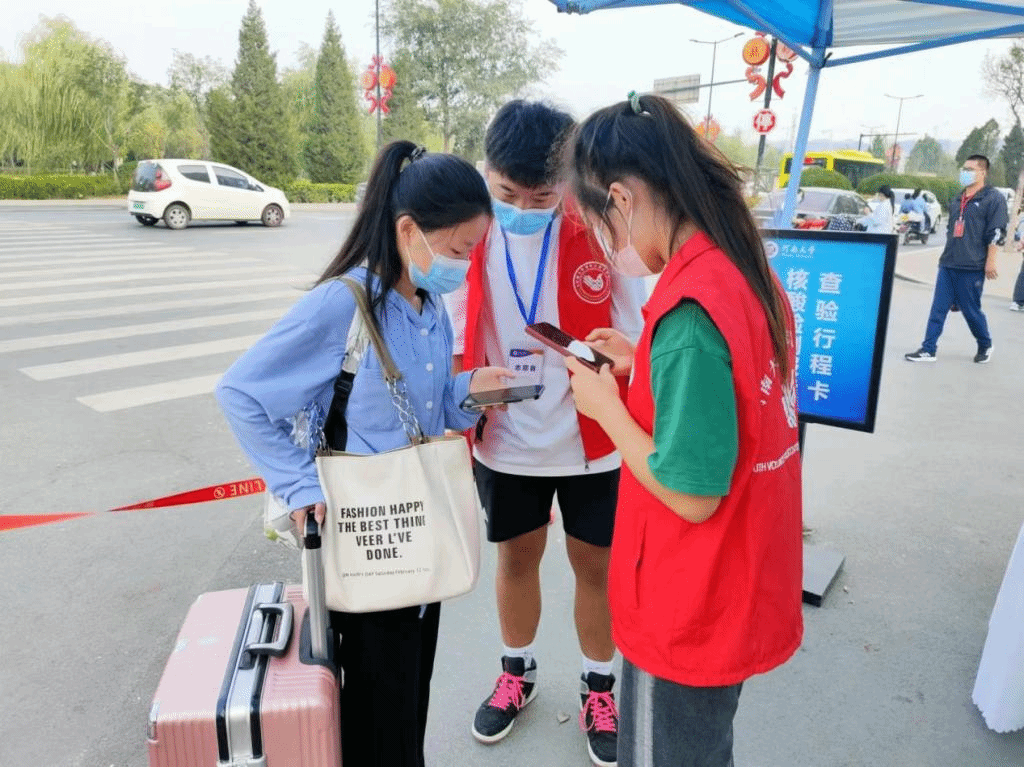 积极响应学校号召,组织志愿者开展志愿活动。志愿活动内容主要包括以下几个方面,消杀测温、引导同学们扫场所码以及帮助返校同学进行今日校园的认证等。