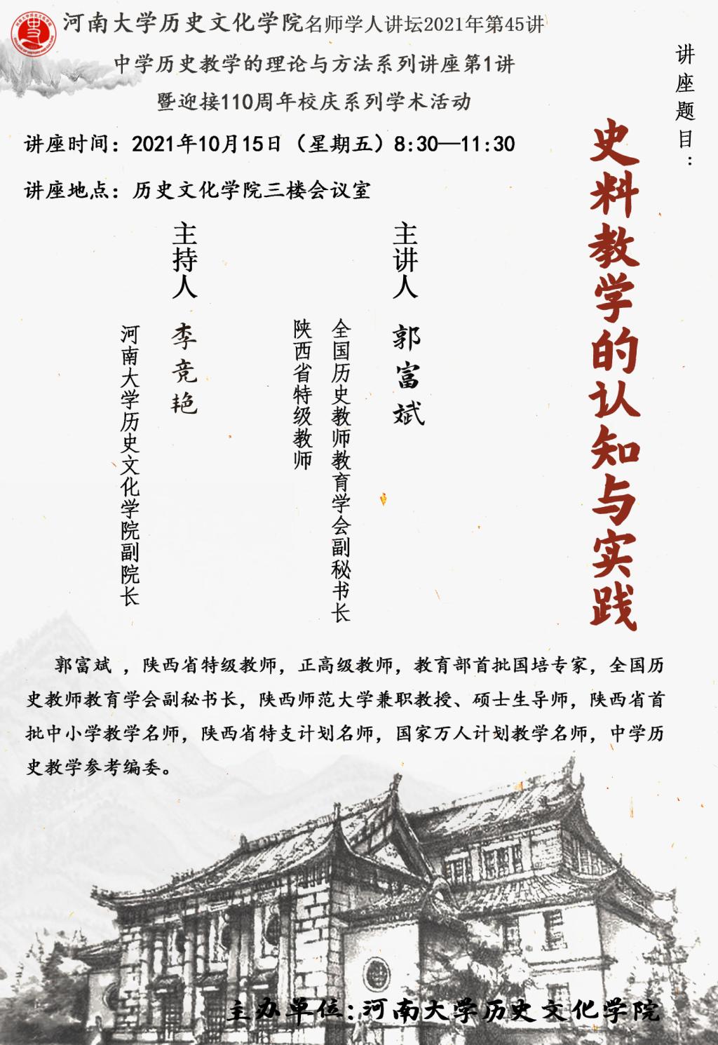 【讲座通知】郭富斌:历史教育中世界视野的培养