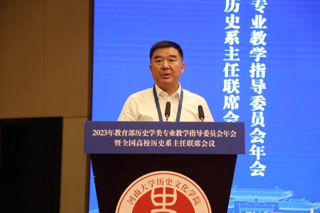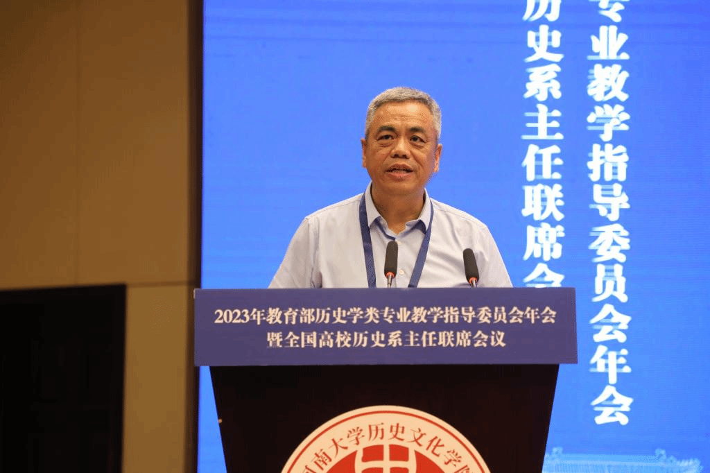 历史沿革和历史学专业建设的基本情况,对与会领导、专家表达了诚挚的欢迎和感谢。河南省教育厅副厅长刁玉华介绍了近年来河南省高等教育工作情况,对河南省历史学科与专业建设提出具体要求。教育部高等教育司武世兴副司长发表重要讲话,强调要从加快培养历史学拔尖创新人才、加快构建历史学自主知识体系、加快探索历史学人才培养新模式、以数字化构建历史学专业教育新形态等方面大力推进历史学领域新文科建设。陈春声教授作教指委工作报告,围绕全面落实教指委工作计划、深入探索基础学科人才培养新路径、整体提升本科教育质量、努力构建面向未来的人才培养机制等四个方面对本届历史学教指委四年多来的工作进行了系统总结。