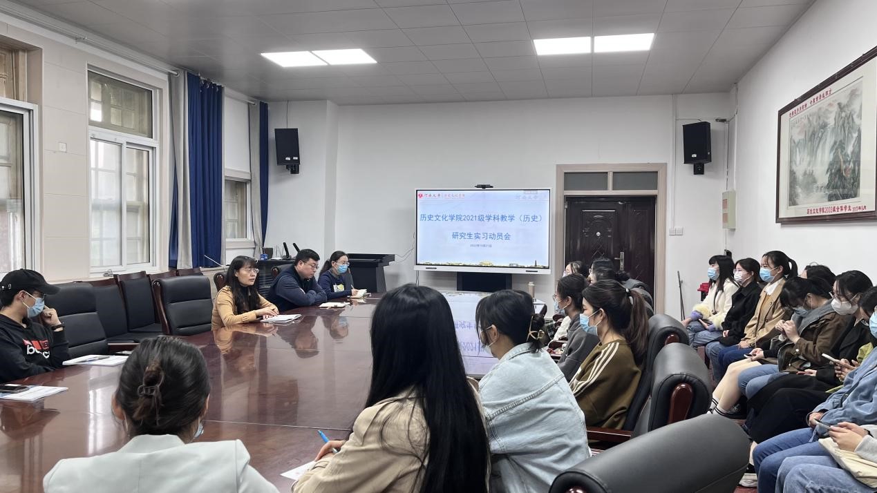 为扎实做好2021级学科教学(历史)专业研究生的实习工作,引导学生明确实习的目的与意义,根据疫情防控情况,10月21日上午,2021级学科教学(历史)研究生实习动员大会在学院三楼会议室召开。学院党委副书记周文凯、副院长李竞艳、研科办主任肖莹以及2021级学科教学(历史)专业全体同学参加了此次会议。